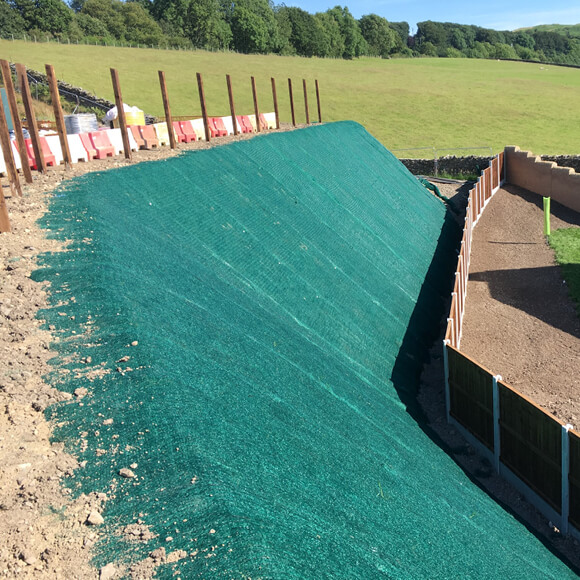 Skråninger med vinkel på opptil 45° kan stabiliseres ved å bygge med Tensar geonett for armering, som legges lagvis, horisontalt bakover fra skråningsoverflaten. Styrken og lengden på geonettene, samt avstanden mellom dem, vil avhenge av skråningsvinkelen, fyllmaterialets egenskaper og eventuell ekstra belastning. Det er normalt ikke behov for noen strukturelle komponenter i overflateplanet, slik at det er mulig å finjustere vinkelen til ønsket versjon. I noen tilfeller kan man legge inn en matte for erosjonsbeskyttelse, før man sår eller planter for å få vegetasjon.