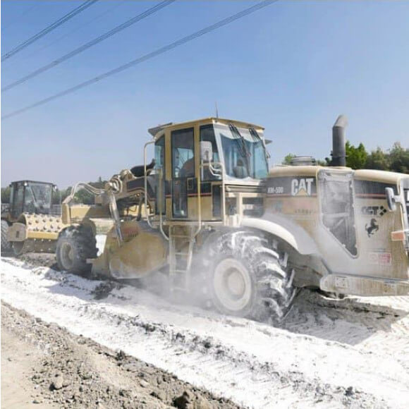 Widely available globally in bags and in bulk deliveries. Cement is used for subgrade stabilisation of granular soils and for stabilisation of aggregate road base material, referred to as cement treated base (CTB). Subgrade stabilisation is typically conducted in-situ using specialised equipment, while the production of CTB usually takes place in a batching plant. The hydrated cement forms a matrix between particles binding the soil particles together.